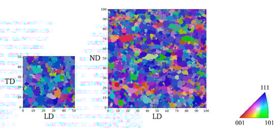 Chicago/Turabian StyleGalán-López, Jesús, and Javier Hidalgo. 2020. "Use of the Correlation between Grain Size and Crystallographic Orientation in Crystal Plasticity Simulations: Application to AISI 420 Stainless Steel" Crystals 10, no. 9: 819. https://doi.org/10.3390/cryst10090819