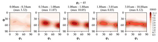 - For each of these bins, an orientation distribution function (ODF) is calculated using the generalized harmonics series expansion method [38], assuming orthorhombic symmetry.