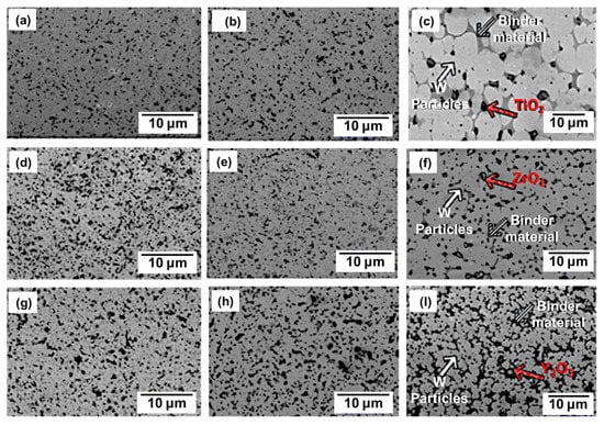 (a–I) Microstructures of oxide dispersing strengthening (ODS) tungsten heavy alloys by SEM numbered from one to nine according to the Taguchi orthogonal array, as listed in Table 1.