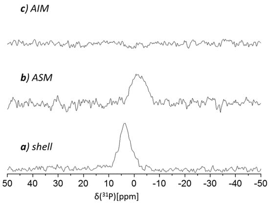 121.85 MHz 31P CP MAS NMR spectra of the Argonauta hians shell extracts: (a) cleaned shell, (b) acid soluble matrix (ASM) and (c) acid insoluble matrix (AIM).