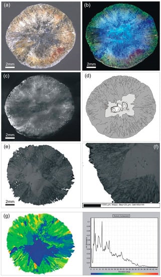 - Kozlova, O.G.; Orlova, A.O. Formation of Spherulites. Dokl. Akad. Nauk SSSR 1985, 280, 628–630. (In Russian) [Google Scholar]