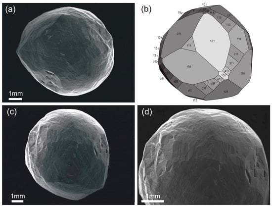 - Pavlushin, A.D.; Zedgenizov, D.A.; Pirogovskaya, K.L. Crystal Morphological Evolution of Growth and Dissolution of Curve-Faced Cubic Diamonds from Placers of the Anabar Diamondiferous Region. Geochem. Int. 2017, 55, 1153–1163. [Google Scholar] [CrossRef]