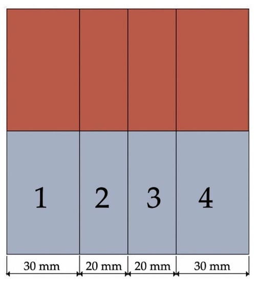 After the welding was completed, the samples were sectioned at different parts. The sections with a length of 30 mm are 1 and 4, respectively. The sections with a length of 20 mm are 2 and 3, respectively. Figure 3 shows the sectioned parts in a complete welding process.
