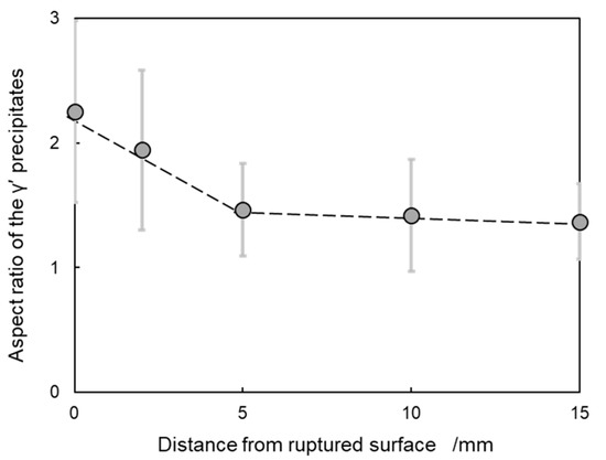 Relationship between the aspect ratio of the γ′ precipitates and distance from the ruptured surface.