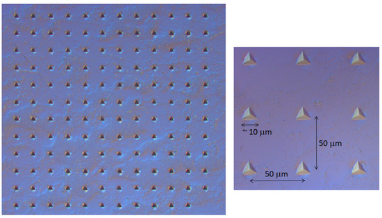 Nanoindentation grids. The space between indents was set to 50 µm. The print size was about 5–10 µm.