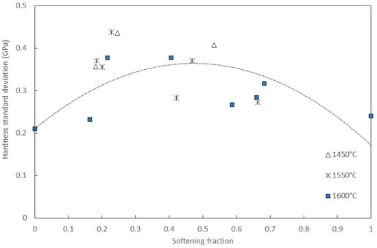 Hardness standard deviation versus softening fraction. The standard deviation is maximum when the softening fraction approaches 50%.