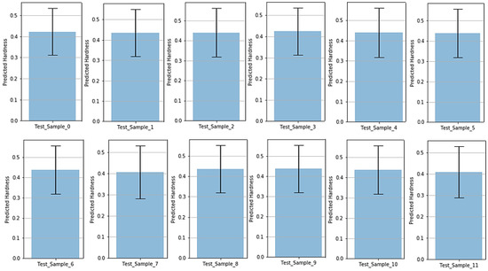 We also generated, for each test sample, the hardness predictions of all 500 models trained. Then, the uncertainty error bars were plotted using standard deviation as the metric, which are shown in Figure 5. As expected, there existed some variance among the predictions of all 500 models.