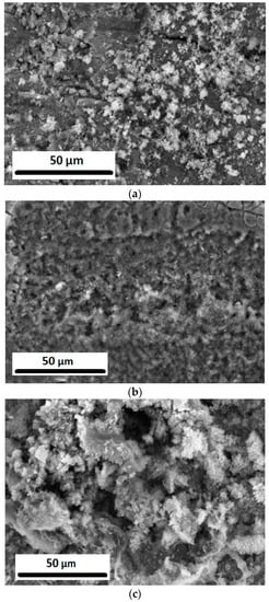 Figure 7 shows the SEM images of the SnO2-coated Cu samples deposited over different time periods, where it can be clearly seen from the images that upon increasing the deposition time of the oxide layer on the surface of the Cu foil, the sample becomes finer. After a long deposition time, the surface becomes rougher than after a shorter time. Upon an increase in the deposition time, the fine grains in the sample aggregate to create a porous, rough surface, resulting in an increase in the current density and a subsequent increase in the icorr values and the delivering of more current, which is favorable for a fuel cell.