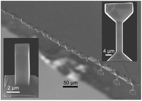 - Wurster, S.; Treml, R.; Fritz, R.; Kapp, M.W.; Langs, E.; Alfreider, M.; Ruhs, C.; Imrich, P.J.; Felber, G.; Kiener, D. Novel Methods for the Site Specific Preparation of Micromechanical Structures. Pract. Metallogr. 2015, 52, 131–146. [Google Scholar] [CrossRef]