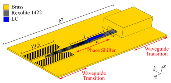 - Tesmer, H.; Reese, R.; Polat, E.; Jakoby, R.; Maune, H. Liquid Crystal Based Parallel-Polarized Dielectric Image Guide Phase Shifter at W-Band. In Proceedings of the 2020 IEEE/MTT-S International Microwave Symposium (IMS), Los Angeles, CA, USA, 4–6 August 2020; pp. 305–308. [Google Scholar] [CrossRef]