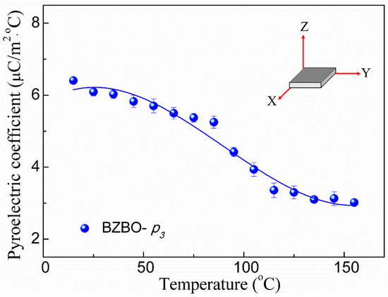 Based on the results, the pyroelectric coefficient p3 of BZBO crystals was low and stable at the measured temperature range, which makes BZBO a promising candidate for pyroelectric sensors wide temperature ranges.