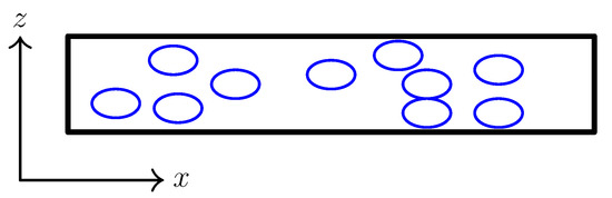In organic superconductors (TMTSF)ClO [6] and (TMTSF)PF [14,15] superconductivity onsets anisotropically, i.e., first along the highest conducting z-axis and only in the end along the lowest-conducting x-axis. This behavior was first explained by assuming filamentary SC inclusions elongated along z-axis [14], but this hypothesis received neither theoretical nor experimental proof till now. Our analysis also shows that the SC domains are not elongated along z-axis but, on contrary, are oblate. Nevertheless, we predict much stronger decrease of resistivity along the least-conducting direction (compare Figure 3 and the inset in Figure 2), similar to experimental observations in (TMTSF)ClO [6] and in many other heterogeneous anisotropic superconductors [32,33,34]. In our recent work [31] we proposed a simple model to explain the anisotropic zero-resistance onset also. We have shown [31] that the percolation probability along SC islands in needle or flat shaped samples is the highest along the shortest direction. A schematic illustration of this idea is given in Figure 6. The same idea can be applied to (TMTSF)ClO to explain the anisotropic onset of superconductivity. Usually, the (TMTSF)ClO samples are much shorter along the interlayer z-axis than along other two, e.g., the dimensions of samples in Ref. [6] are mm. Hence, the probability of percolation for the ellipsoidal inclusion, even with the obtained anisotropic aspect ratios and , will be the highest along the z-axis. Our preliminary calculations of percolation threshold for such flat elongated samples confirm this statement and show that the zero resistance, i.e., the percolation threshold, can be achieved even when the SC volume ratio . Hence, without invoking a filamentary SC one can easily explain the anisotropic onset of superconductivity in organic metals.
