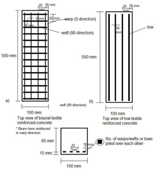 - It was discovered that the shape and placement of textiles directly impact the binding amongst concrete and reinforcements. Lost rovings/tows result in a better connection owing to a rise in the interface amongst the concrete matrix and reinforcements, and consequently, an increase in the number of active filaments. Accordingly, the load capacity and deflection of the TRC beams with loose roving/tow were much higher.