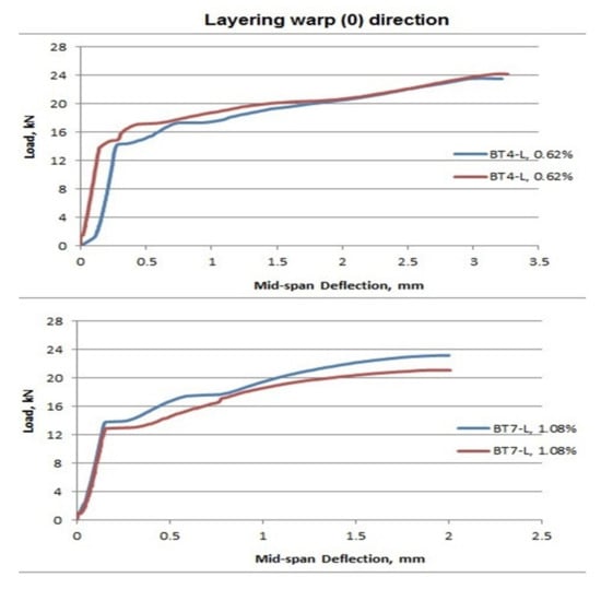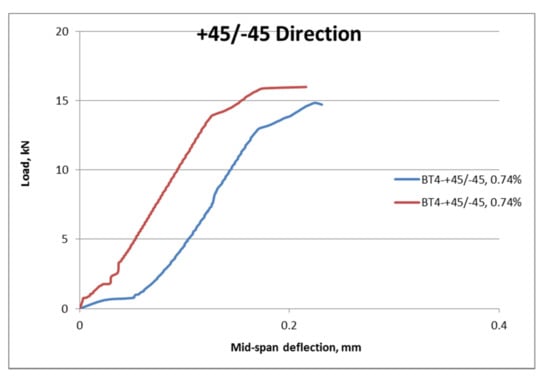 | Reinforcement | Area (mm2) | Vf (%) | Voids Ratio | Average Ultimate Load (kN) | Average Deflection (mm) |