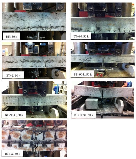 - Verbruggen, S.; Tysmans, T.; Wastiels, J. TRC or CFRP strengthening for reinforced concrete beams: An experimental study of the cracking behaviour. Eng. Struct. 2014, 77, 49–56. [Google Scholar] [CrossRef]