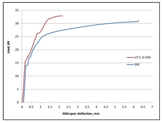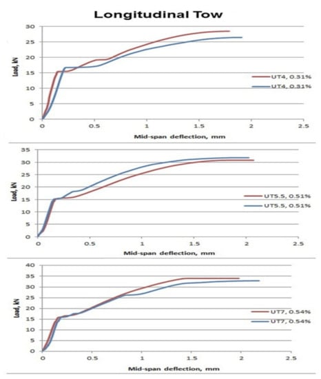| Reinforcement | Area (mm2) | Vf (%) | Average Ultimate Load (kN) | Average Deflection (mm) |