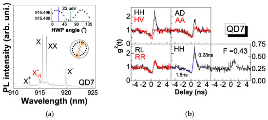 - Chen, H.; Zhuo, Z.; Huang, J.; Dou, X.; He, X.; Ding, K.; Ni, H.; Niu, Z.; Jiang, D.; Sun, B. Correlation between exciton polarized lifetime and fine structure splitting in InAs/GaAs quantum dots. Appl. Phys. Lett. 2020, 116, 082101. [Google Scholar] [CrossRef]