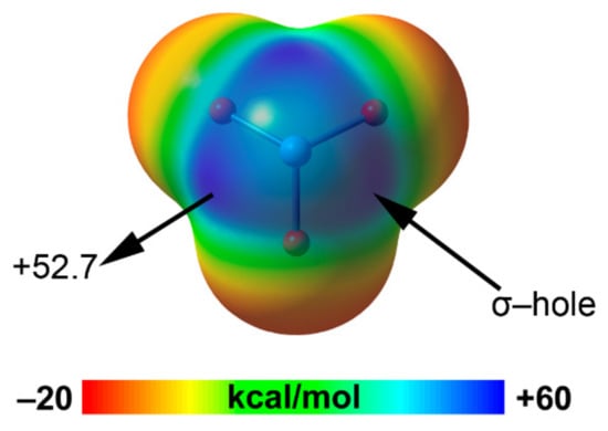 In this regard, several studies have demonstrated that σ–holes (regions of positive electrostatic potential located on the extension of covalent bonds) can be used in a broad spectrum of fields, such as host–guest chemistry, catalysis, supramolecular chemistry, membrane transport, crystal engineering, etc. Noteworthy review articles, accounts, and book chapters are available in the literature describing promising applications and basic features of the σ–hole group of NCIs [28,29,30,31,32,33,34,35,36,37,38,39,40,41,42,43,44,45]. Moreover, several works have been devoted to the comparison of the geometric and energetic characteristics of σ–hole interactions to the HB [46,47,48,49,50,51].