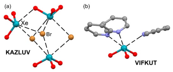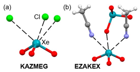 - Goettel, J.T.; Matsumoto, K.; Mercier, H.P.A.; Schrobilgen, G.J. Syntheses and structures of xenon trioxide alkylnitrile adducts. Angew. Chem. Int. Ed. 2016, 55, 13780–13783. [Google Scholar] [CrossRef] [PubMed]