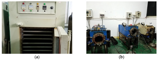 Experimental equipment: (a) heat treatment equipment with temperature and time controls; (b) heat–pressure treatment equipment with temperature, pressure and time controls.