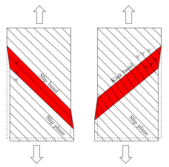 - Forest, S. Modeling slip, kink and shear banding in classical and generalized single crystal plasticity. Acta Mater. 1998, 46, 3265–3281. [Google Scholar] [CrossRef]