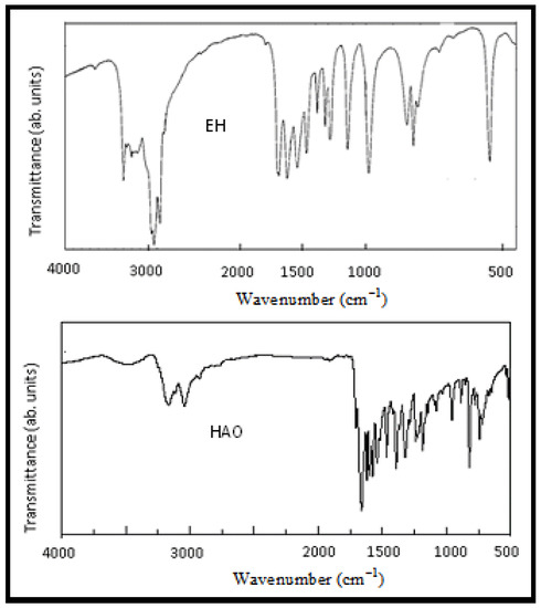 FT-IR spectra of EH and HAO, respectively.