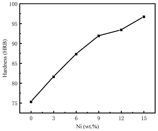 3.2.1. Effect of Ni Content on Hardness of Matrix