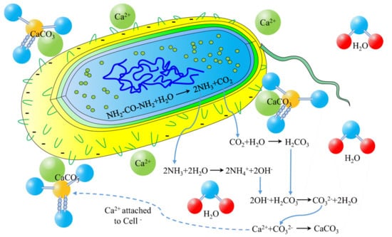 Schematic diagram of MICP based on urease-producing bacteria [60].