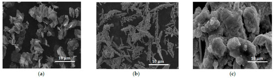 SEM micrographs for Graphene nanosheets (a), Copper (b), and Zinc powder (c).