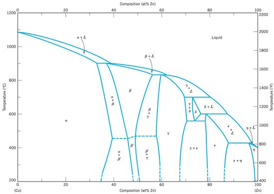 The fabrication of Cu-matrix composite has attracted an increased interest, especially the fabrication of Cu-Zn alloy (brass), which has been widely used as an industrial material due to its excellent characteristics, such as: high corrosion resistance, non-magnetism, and good plasticity [1]. Cu-Zn alloy is significantly less expensive than copper, but unfortunately, has low strength properties, which can negate the economic advantage of brass [2,3]. Zinc plays a crucial role in the mechanical properties of copper-zinc alloys. For many working conditions, the copper-zinc alloys are subjected to the static tensile load or dynamic fatigue load. During the past decades, much of the research on the microstructure and mechanical properties of the copper-zinc alloys has been carried out, including the microstructure evolution and tensile plastic deformation, by using equal-channel angular pressing process, which demonstrated the increase in both plasticity and strength of refining grain of copper-zinc alloy with grain sizes less than 100 nm [4,5,6]. In recent years, engineering applications of copper-zinc alloys have increased steadily due to their attractive properties, such as high specific strength and good machinability. In order to improve the strength of Cu-Zn alloy, previous researchers have completed the addition of one or more alloying elements, such as Sn, Mn, Ni, Al, or Co.