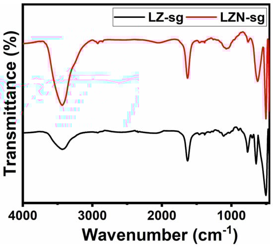 FT-IR spectra of LZ-sg and LZN-sg pyrochlores.