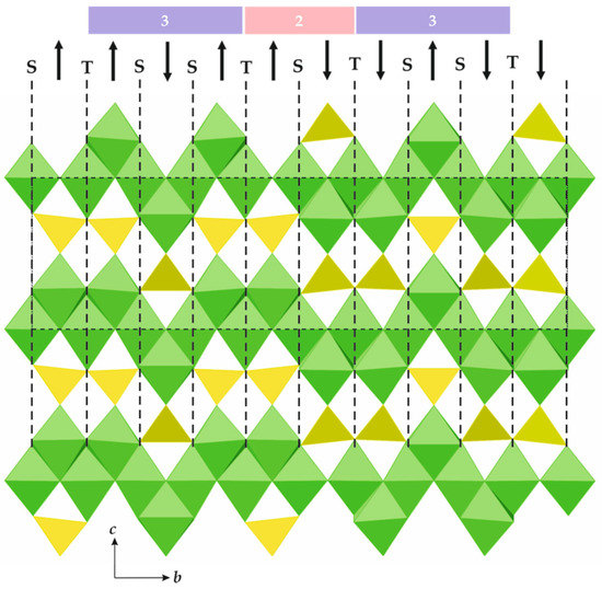 - Hejny, C.; Armbruster, T. Polysomatism in högbomite: The crystal structures of 10T, 12H, 14T, and 24R polysomes. Am. Mineral. 2002, 87, 277–292. [Google Scholar] [CrossRef]
