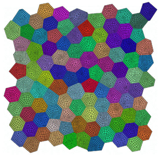 Illustration of mesh discretization of 100-grain RVE using DMG method.