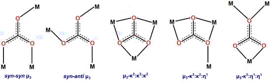 Chemical fixation of CO2 by metal complexes, especially as carbonate anion, attracted particular attention in terms of fundamental research but also of potential applicability for reducing concentration of this major greenhouse gas. Carbonate anion is a versatile bridging ligand, able to link multiple metal ions in various coordination modes [1,2,3]. Among these numerous coordination modes of the carbonate anion, several types of µ3 bridges were reported: syn-syn µ3 [4], syn-anti µ3 [5,6,7,8], µ3−k2:k2:k2 [7,9,10,11,12], µ3−k2:k2:η1 [13,14], and µ3−k2: η1:η1 [7,15,16] (Scheme 1).