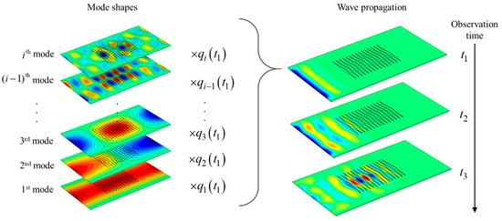 14]. Linking time-domain vibration behaviors to spatial-domain propagating waves can also help us understand instantaneous wave responses at any time or at any interval with identical high calculation efficiency, if compared to a full finite element analysis.