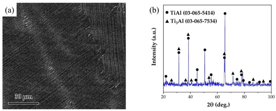 (a) SEM image of the microstructure of TiAl substrate. (b) XRD pattern of TiAl substrate.
