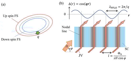 - Fulde, P.; Ferrell, R.A. Superconductivity in a strong spin-exchange field. Phys. Rev. 1964, 135, A550. [Google Scholar] [CrossRef]