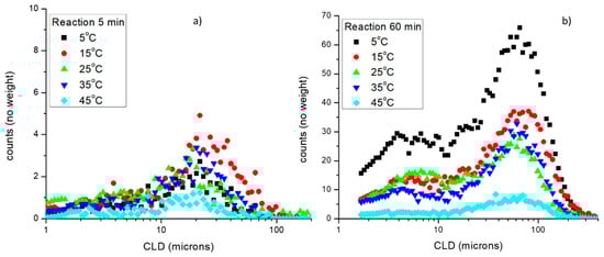 The solid K2SO4 obtained at 5 °C represents a solid concentration of 11 wt/wt% in the pulp, which is highly favourable for process monitoring by FBRM, as recommended by Senaputra et al. [], who recommend a pulp concentration not greater than 20 wt/wt%.
