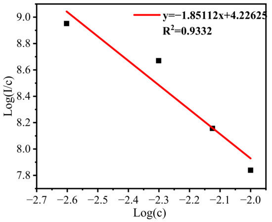 Studies have shown that luminescence intensity is closely related to the concentration of activators [36,37], and the type of fluorescence quenching of solid materials can be determined by in Equation (2):