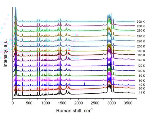 Raman spectra of LLHM were recorded in the temperature range of 300–11 K during cooling without repeating on heating.
