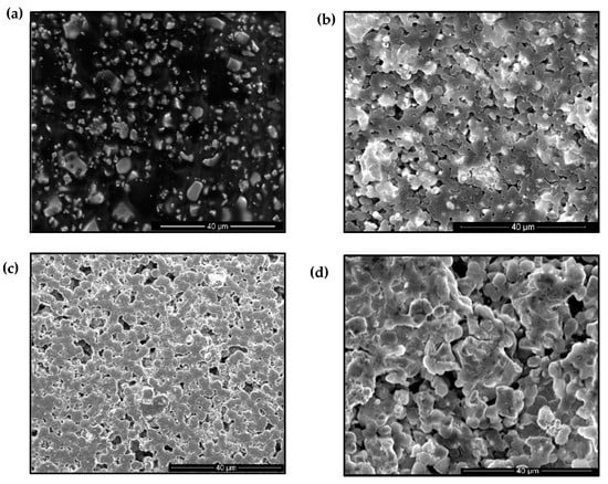 SEM images with different PVDF/ PZT concentrations: (a) 20:80; (b) 40:60; (c) 60:40; (d) 80:20.