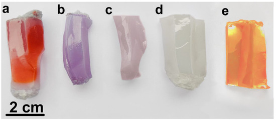 Appearance of (a) 2.0Y0.8CeSZ, (b) 2.0Y0.8NdSZ, (c) 2.0Y0.8ErSZ, (d) 2.0Y0.8YbSZ and (e) 2.0Y0.8TbSZ crystals.