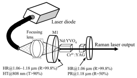 Schematic of the passively Q-switched Nd:YVO4 self-Raman laser [24].