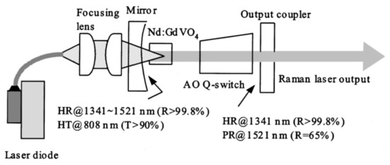 Schematic of actively Q-switched Nd:GdVO4 self-Raman laser [18].