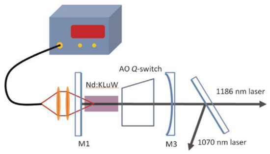Schematic diagram of the actively Q-switched Yb:KLuW self-Raman laser [102].