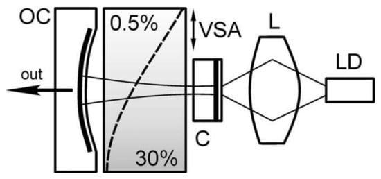 Schematic diagram of the PQS Nd:GdVO4 self-Raman laser: LD, laser diode; L, focusing lens; C, laser crystal; VSA, saturable absorber with variable transmission; OC, output coupler [109].