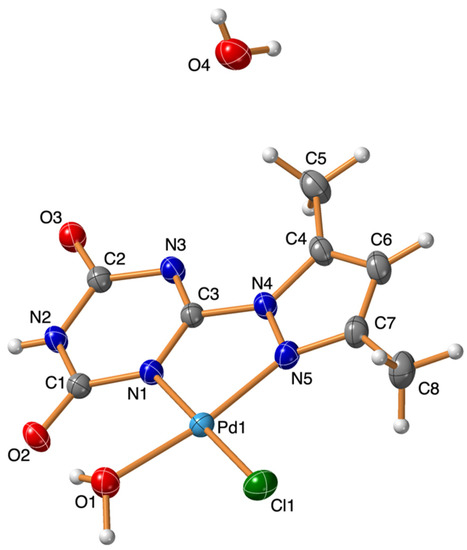 3.1. X-ray Structure Description of [Pd(PT)Cl(H2O)]*H2O
