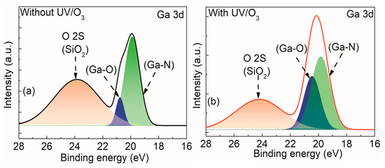 - Kim, K.; Ryu, J.H.; Kim, J.; Cho, S.J.; Liu, D.; Park, J.; Lee, I.-K.; Moody, B.; Zhou, W.; Albrecht, J.; et al. Band-bending of Ga-polar GaN interfaced with Al2O3 through ultraviolet/ozone treatment. ACS Appl. Mater. Interfaces 2017, 9, 17576–17585. [Google Scholar] [CrossRef]