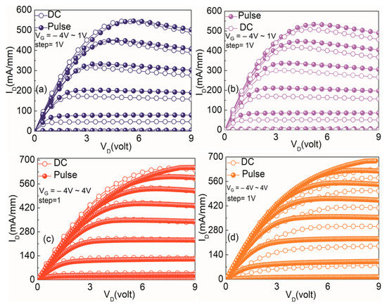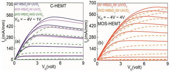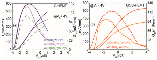 - Kim, K.; Kim, T.J.; Zhang, H.; Liu, D.; Jung, Y.H.; Gong, J.; Ma, Z. AlGaN/GaN schottky-gate HEMTs with UV/O3-treated gate interface. IEEE Electron. Device Lett. 2020, 41, 1488–1491. [Google Scholar] [CrossRef]