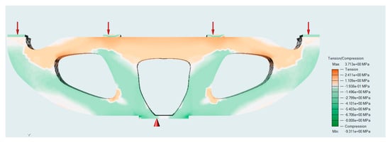 - Bendsøe, M.P.; Duysinx, P. Topology Optimizatin of Continuum Structures with Local Stress Constraints. Int. J. Numer. Methods Eng. 1998, 43, 1453–1478. [Google Scholar] [CrossRef]